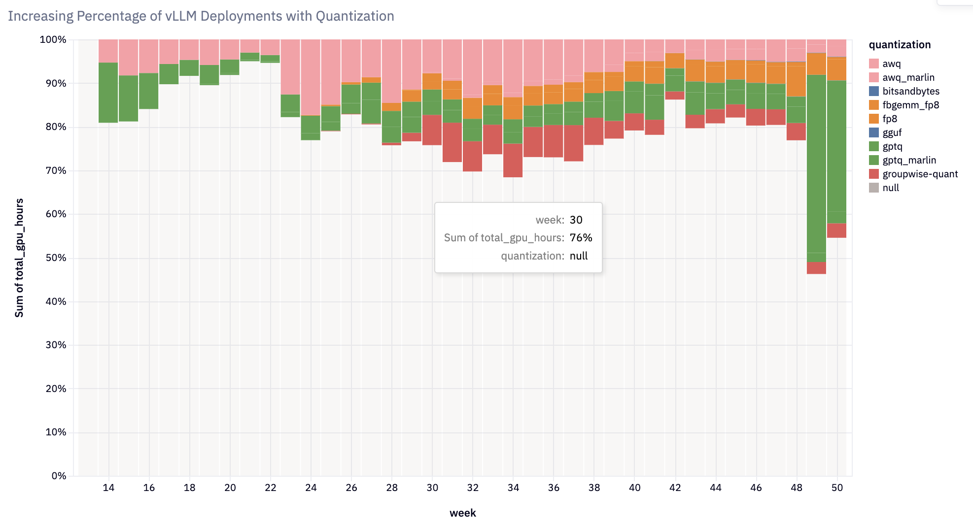 The metrics and insights throughout this post are powered by vLLM’s usage system, which collects anonymized deployment data. Each vLLM instance generates a UUID and reports technical metrics including: